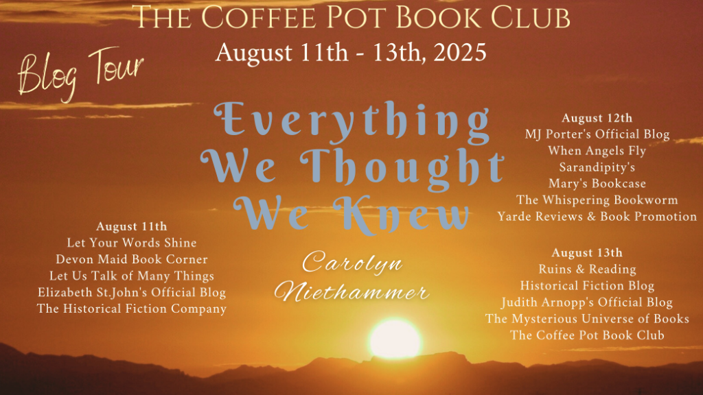 Today, I’m delighted to host Everything We Thought We Knew by Carolyn Niethammer. The book is on a blog tour with The Coffee Pot Book Club: https://thecoffeepotbookclub.blogspot.com/2025/08/blog-tour-everything-we-thought-we-knew-by-carolyn-niethammer.html